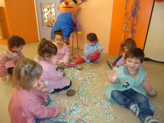 TAMBÉ HEM COMENÇAT A GAUDIR DE LA FESTA I DISBAUXA PROPOSADA PEL REI CARNESTOLTES. ENS HA PORTAT MAQUILLATGES, CONFETIS, DISFRESSES, SABATES DE TALÓ,... I CONSIGNES MOLT DIVERTIDES. MIREU MIREU!